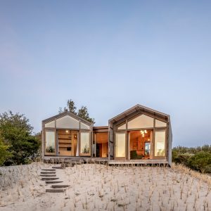 Located on Goeree-Overflakkee island, Duinhuis – or Dune House – was constructed using portable methods in efforts to adhere to strict building regulations on the Ouddorp dunes.