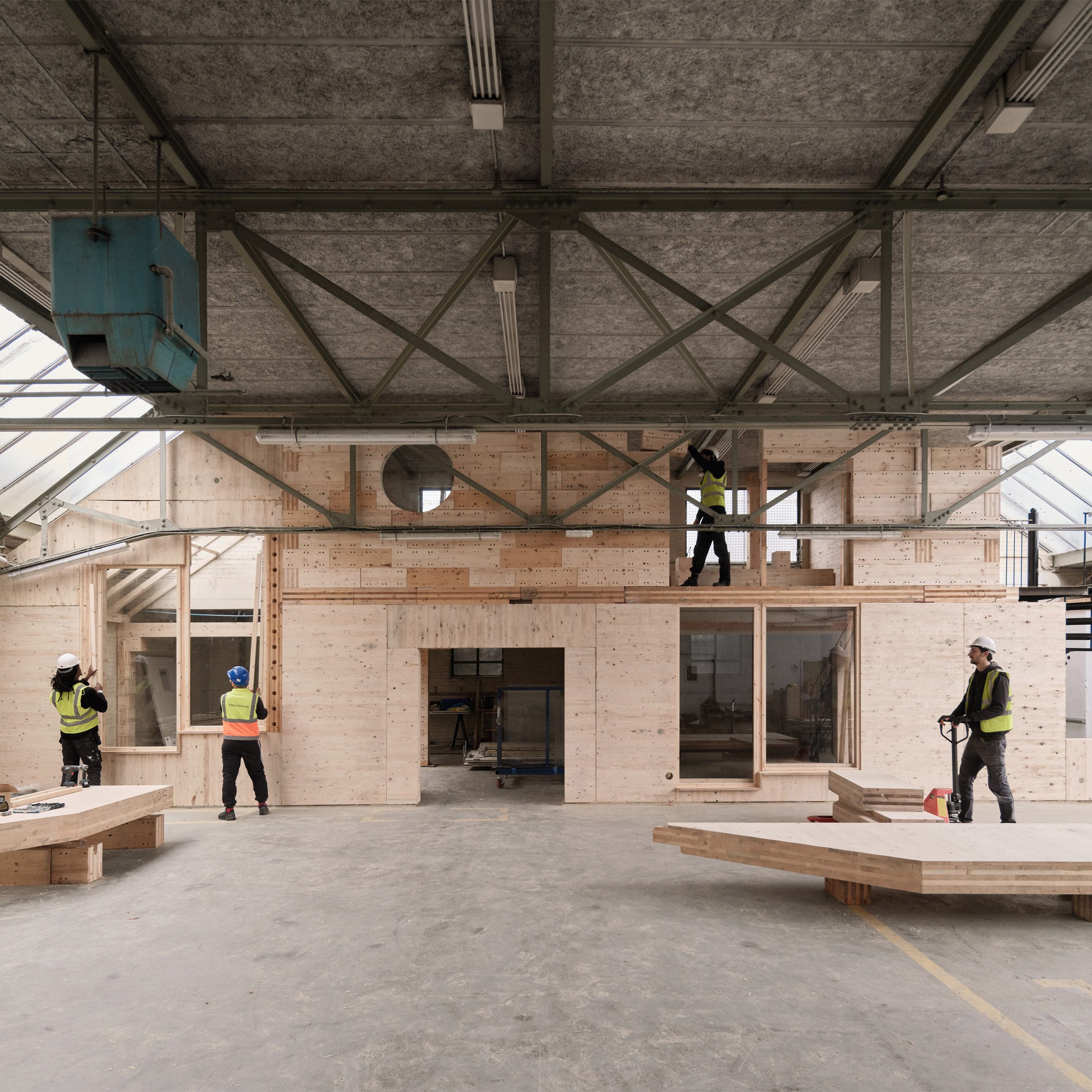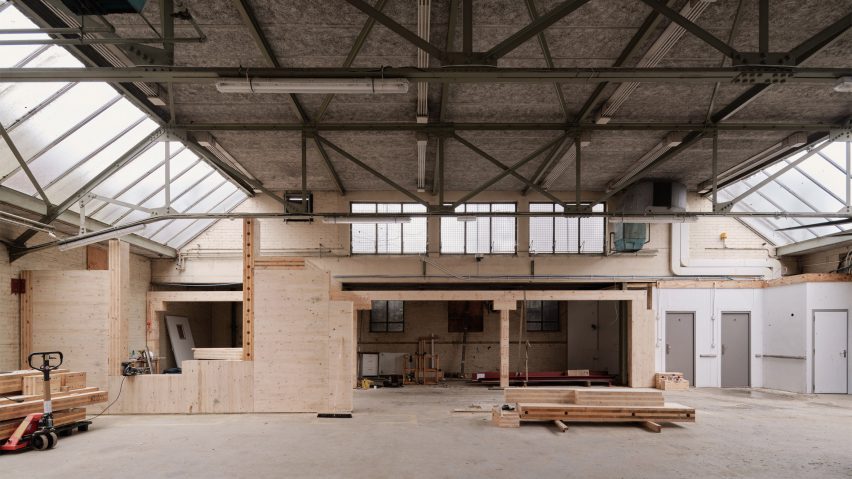 "By harnessing our skill set and our access to materials, we were able to deliver a remedial plan, electrical fit out and full factory control process to ensure it remains a great building for years to come – one that can serve the material revolution that we are driving at Tipping Point East," Yes Make founder Joel De Mowbray told Dezeen.