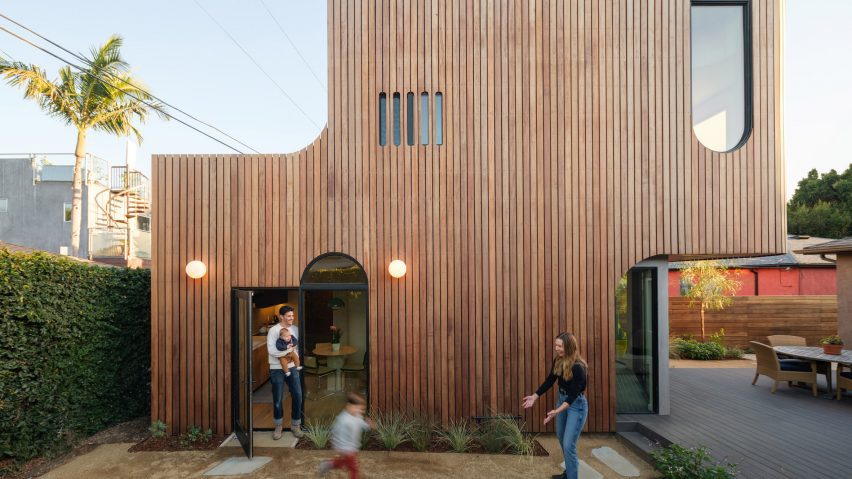 Local studio Byben has created an accessory dwelling unit in southern California called Offset ADU, which features ipe-wood cladding and curved elements that "soften the feel and look" of the building.